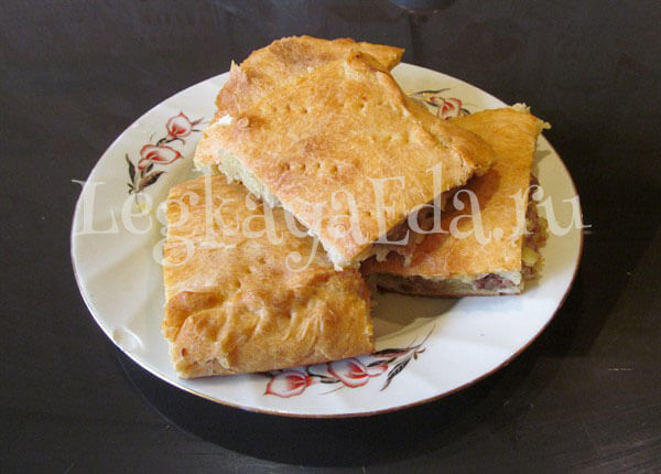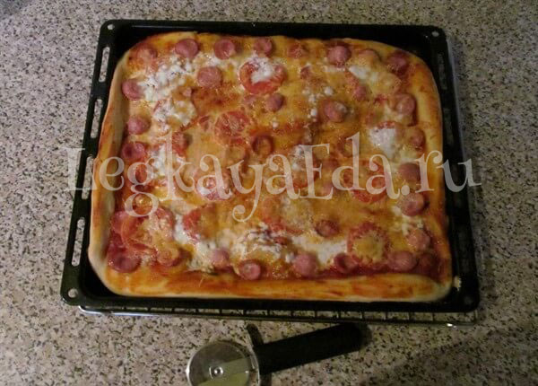 Пицца с колбасой, помидорами и сыром в духовке в домашних условиях