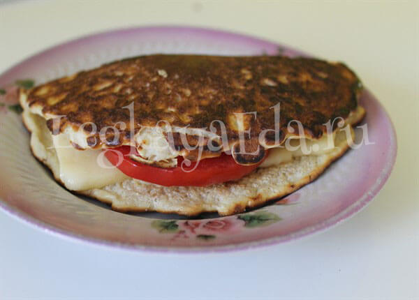 Омлет на молоке с сыром и с помидорами на сковороде