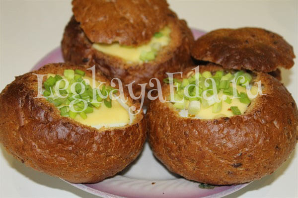 Яичница с помидорами и сыром в булочке на завтрак в духовке