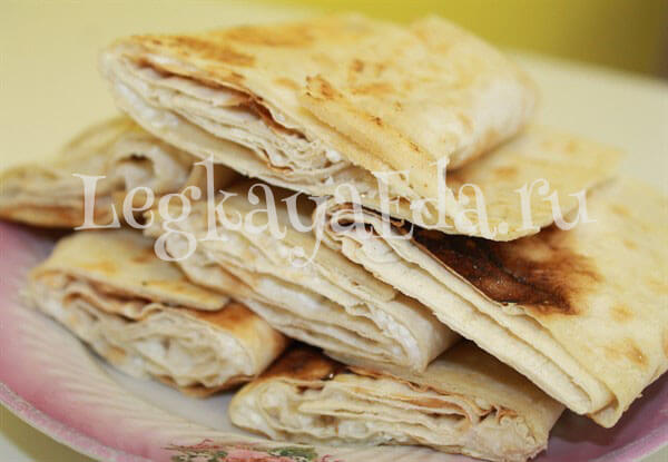 Лаваш с творогом и бананом, жареный на сковороде